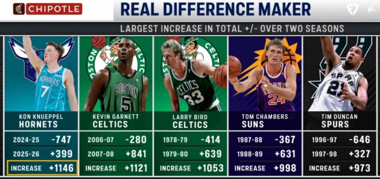 老牌配资平台论坛 熬到头了!黄蜂近两个赛季正负值净增+1146 增幅位列历史第1