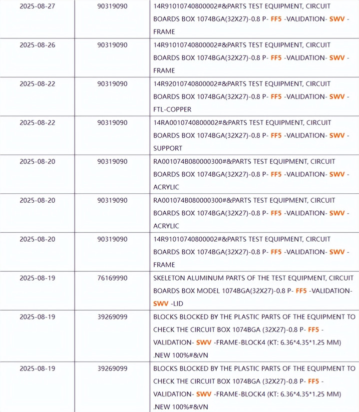在最新的一份货物清单中,我们就首次看到了Sound Wave,缩写SMW,封装接口FF5 BGA-1074,尺寸32 x 27毫米,针脚间距0.8毫米。
