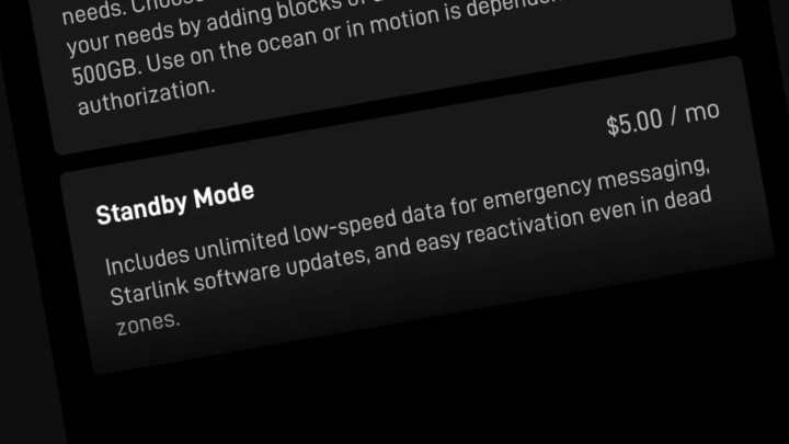 目前看来,并未将待机模式设计为一项长期服务产品。截至目前,公司将其定位为“星链漫游”用户的备用方案,用于“在信号盲区进行紧急消息发送以及便捷恢复连接”。待机模式甚至没有出现在.com官网上;相反,它仅对现有用户(包括漫游和住宅用户)开放,作为其账户中一个隐藏的服务选项。